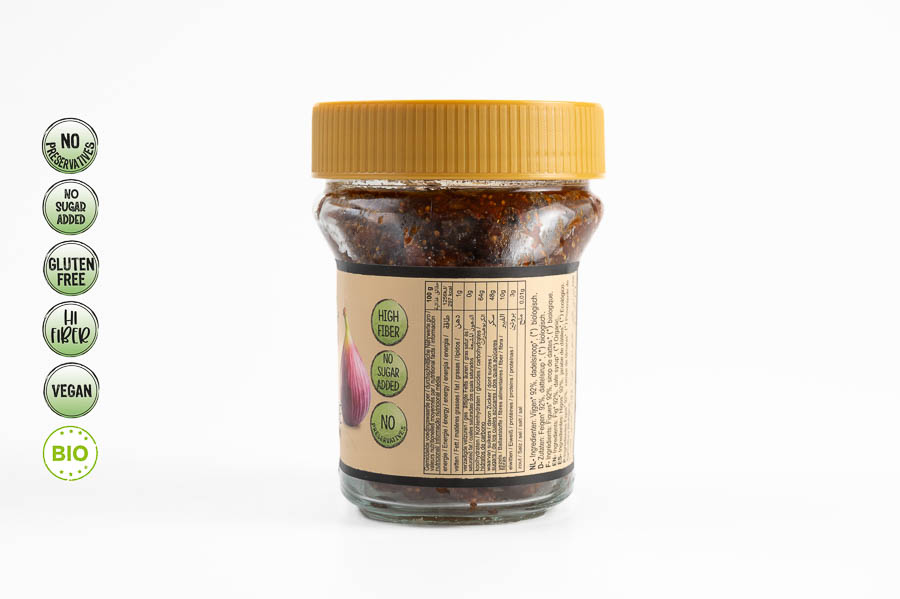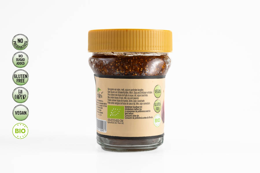 Deliciosa conserva ecológica de higo, 100% vegana y sin gluten. Rica en fibra, sin conservantes ni azúcares añadidos. Un dulce natural y saludable para disfrutar en cualquier momento.