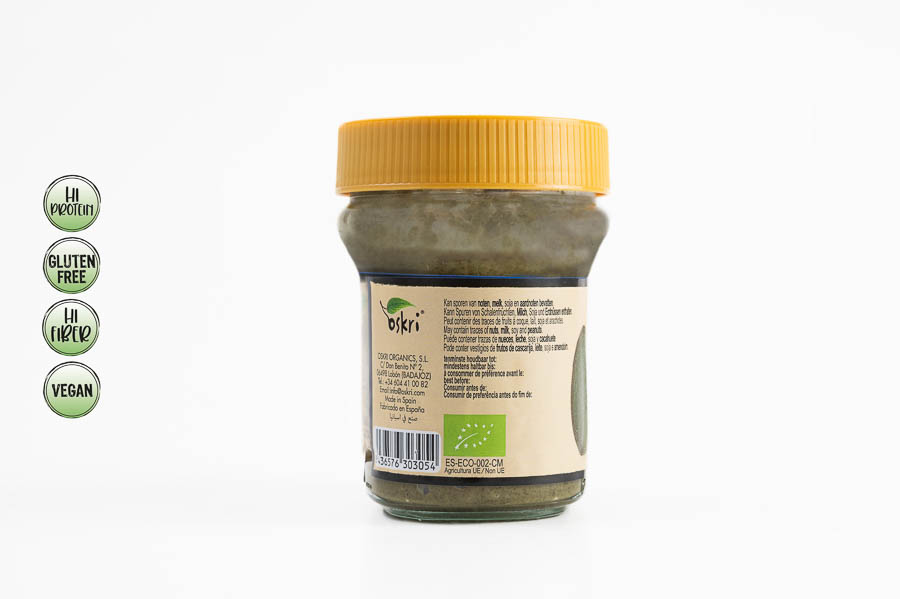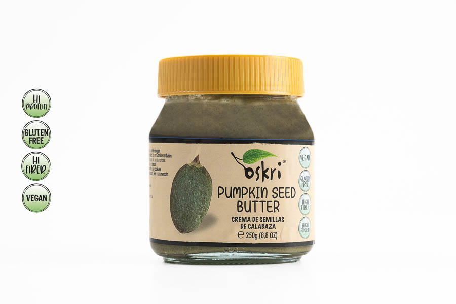 Disfruta la Crema de Semillas de Calabaza de Oskri: vegana, sin gluten y cargada de fibra y proteínas. Una opción versátil y deliciosa para quienes buscan salud y sabor.